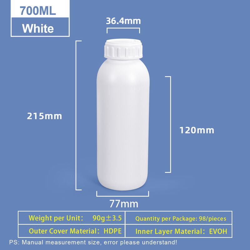 This high barrier reagent bottle, designed for professional use. This product features a main structure composed of HDPE outer wall and an EVOH barrier layer. Using the co-extrusion technology of EVOH and HDPE, this bottle is widely utilized in the liquid packaging industry, specifically for sterile packaging of food products such as dairy, meat, fruit juices, and condiments. Additionally, it is also suitable for non-food applications, including packaging solvents and chemical substances.